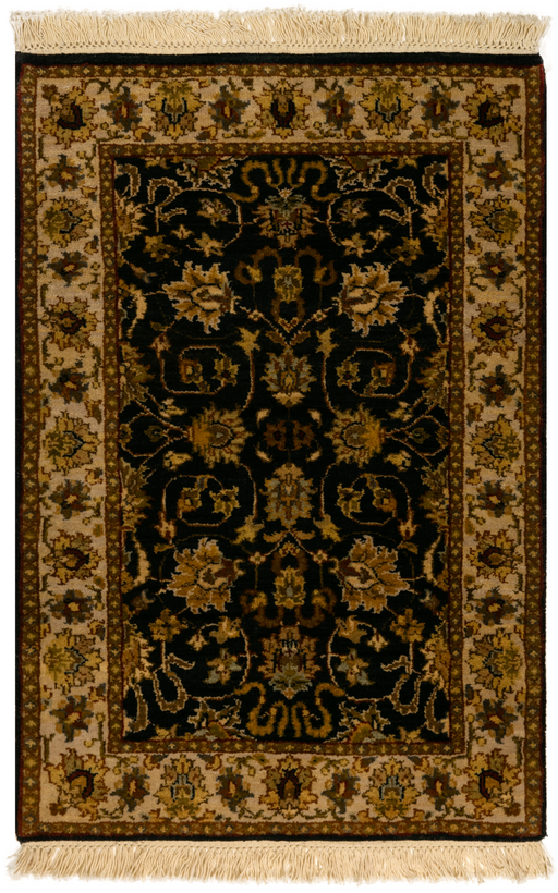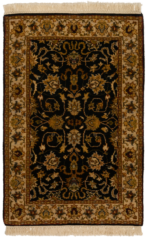 2x3 Premiere Collection design in Black and Ivory. Made with hand-spun wool, this is a collection of opened up classic designs. These rugs have a t...
