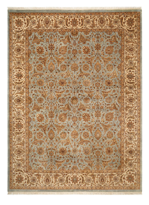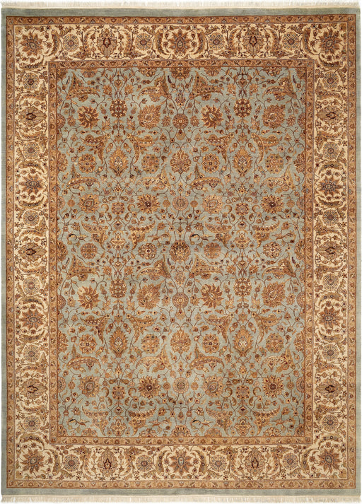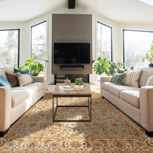 Premiere Collection in light blue and ivory border. Made with hand-spun wool, this is a collection of classic designs. These rugs have a thick an...