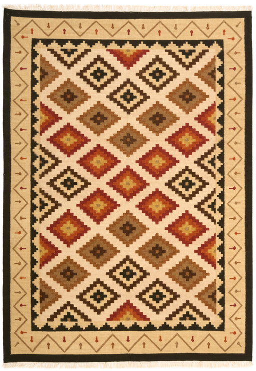 Dhurrie rugs are flat woven, not knotted and are made on a horizontal loom like fabrics are woven. Flat woven rugs are sturdy, reversible and are m...