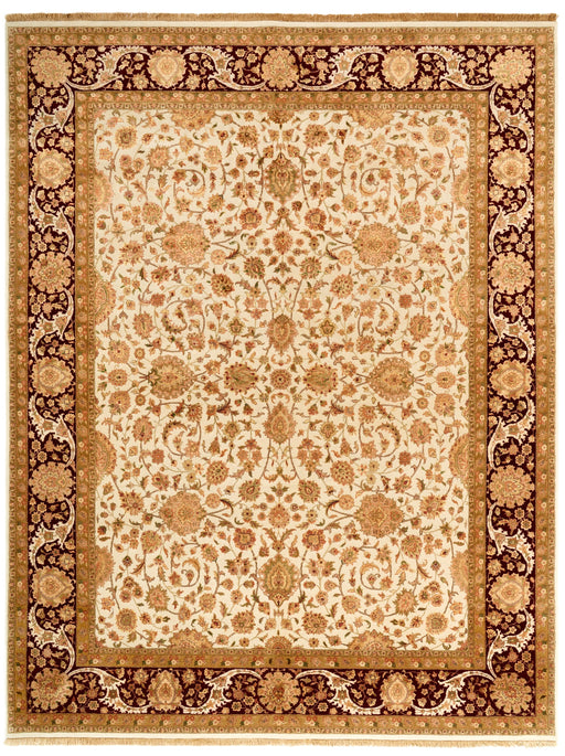 Colour: Red and Ivory. Material: Fine Silk on cotton base Dimensions: 6'02" x 9'03" Construction: Hand Knotted. Made in Kashmir, India.