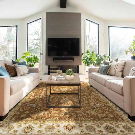 Colour: Beige and Rust Production method: Hand-knotted. Persian Weave. Made in India. Material: Hand-spun wool on Cotton base Dimensions: 3.0 x 4...