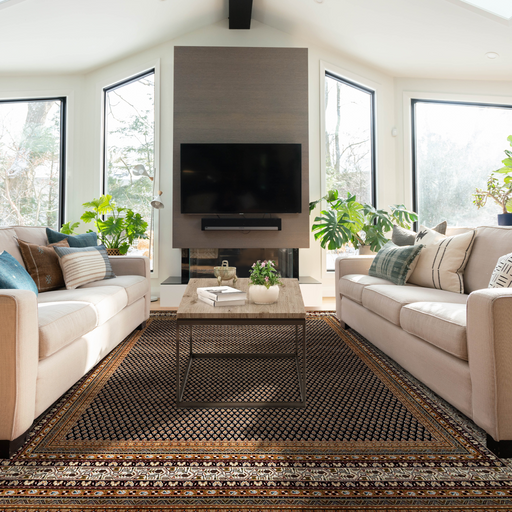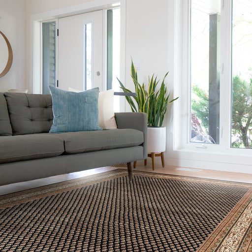 Classic Mir in Black and Cream border in 10x13 feet. Mir was one of the most classic designs in the 1980's. It resembles the Persian motif of Bote...