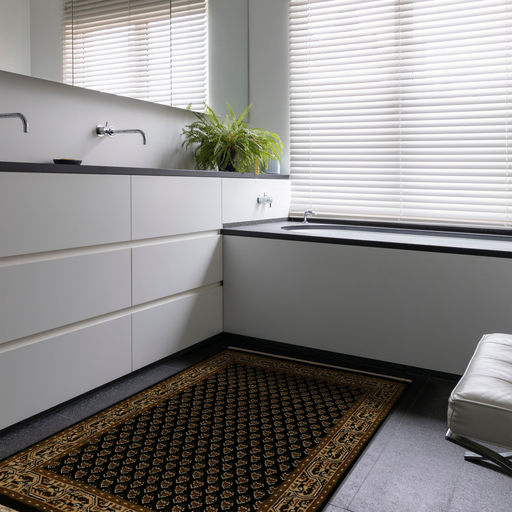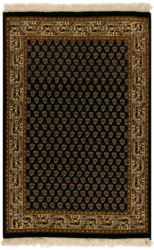 Classic Black Mir in 6x9 feet. Mir was one of the most classic designs in the 1980's. It resembles the Persian motif of Boteh, which is a floral s...