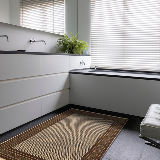 8x10 Mir in Cream and Olive Brown. Mir was one of the most classic designs in the 1980's. It resembles the Persian motif of Boteh, which is a flor...