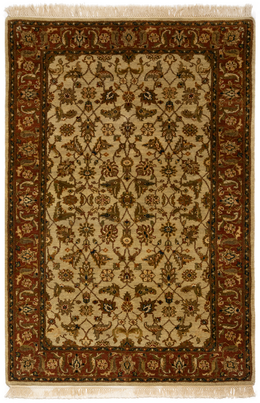 4x6 Premiere Collection design in ivory and brown. Made with hand-spun wool, this is a collection of opened up classic designs. The hand-spun wool...