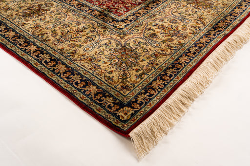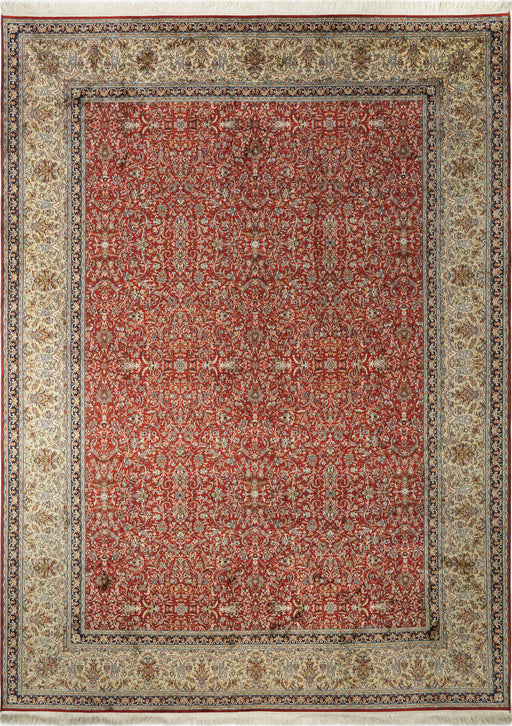 Colour: Red and Ivory Material: Pure natural silk on a cotton base Dimensions: 9'02" x 12'06" Construction: Hand Knotted. Made in Kashmir, India.