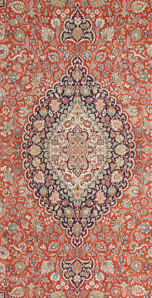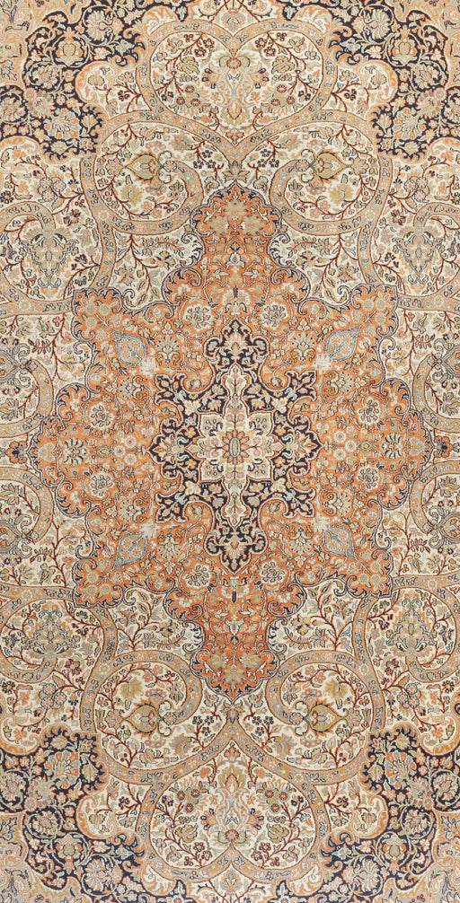 Colour: Ivory and Rust. Material: Pure fine silk on a cotton base. Dimensions: 9'04" x 12'0" Construction: Hand Knotted. Made in Kashmir, India.