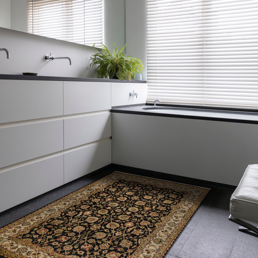 Indo Persian Black and Burgundy. Made of New Zealand Wool on a cotton base. Perfect for a den/computer living space. Or in the bed area. Colour:...