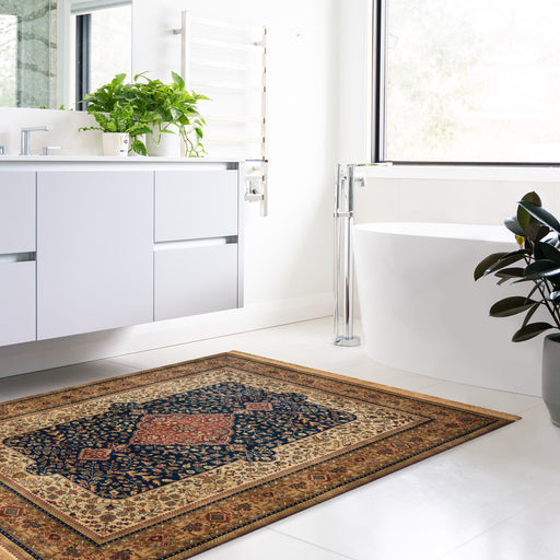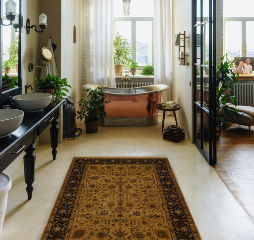 5x7 Antique Finish Collection design in black and gold. Made with hand-spun wool, this is a collection of opened up classic designs. The hand-sp...
