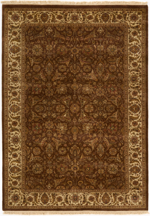 Colour: Ivory and Light Brown Material: Pure fine silk on a cotton base Dimensions: 6'07" x 9'07" Construction: Hand Knotted. Made in Kashmir, Ind...