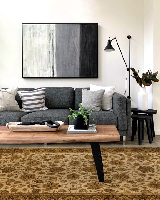 Sophisticated greys, charcoals and blues make this perfect design for your modern luxury living room. Nepalese weave rugs are very beautiful with a...