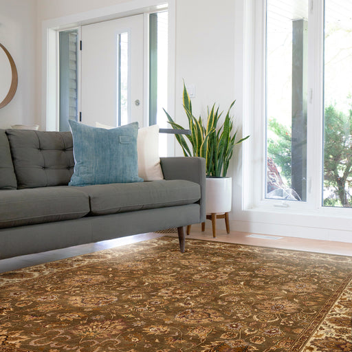 6x9 Premiere collection in olive and beige. Made with hand-spun wool, this is a collection of classic designs. These rugs have a thick and plush p...