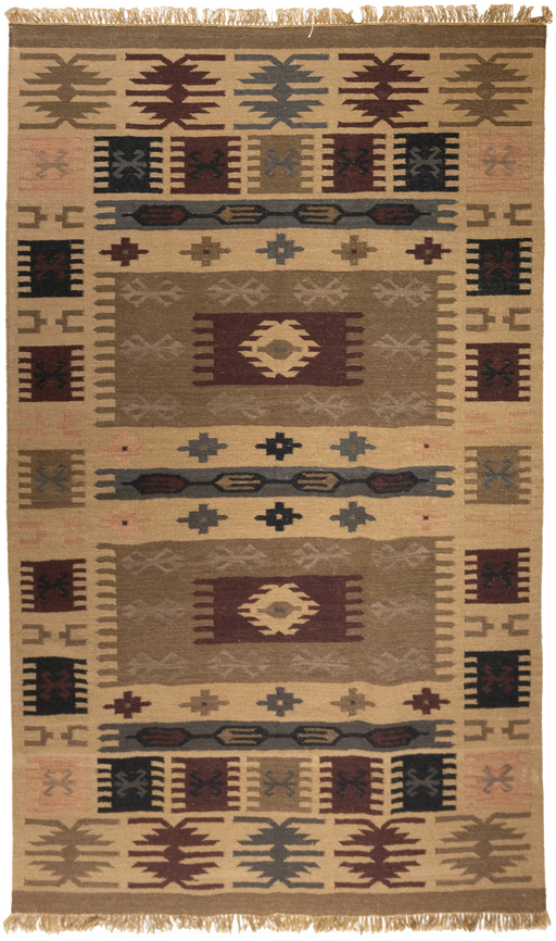Simplicity is the highest form of Elegance. 5x7 Elegance collection piece in Beiges and Gold. Made with handspun wool, this is a collection of cla...