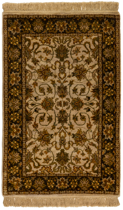 2x3 Premiere Collection design in Ivory and Brown. Made with hand-spun wool, this is a collection of opened up classic designs. These rugs have a t...