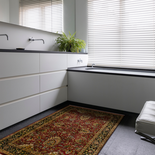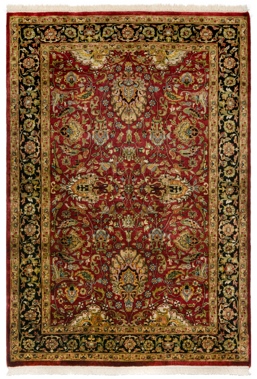 Colour: Red and Black Production method: Hand-Knotted. Persian Weave. Made in India. Material: High-twist, hand-spun New Zealand Wool and fine sil...