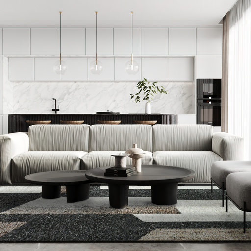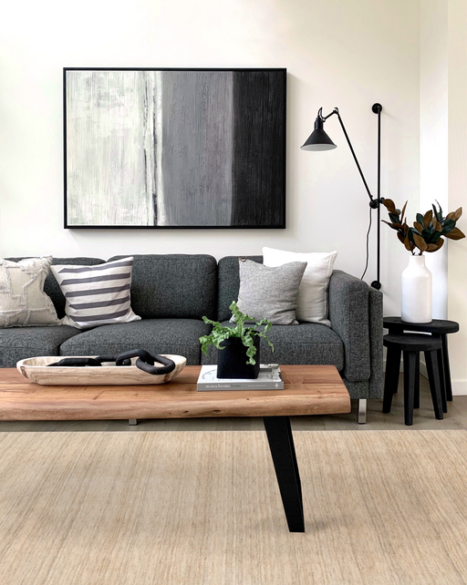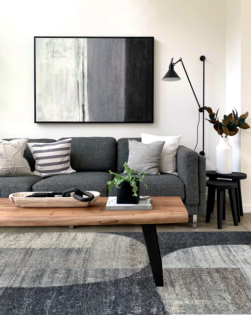 Sophisticated greys, charcoals and blues make this perfect design for your modern luxury living room. Nepalese weave rugs are very beautiful with a...