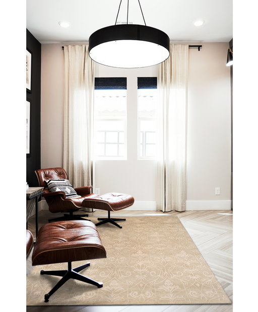 8x10 Loop Cut design in wool and silk. All beige, this design features two texture interplay. This elegant design is fit for your hotel room getaw...