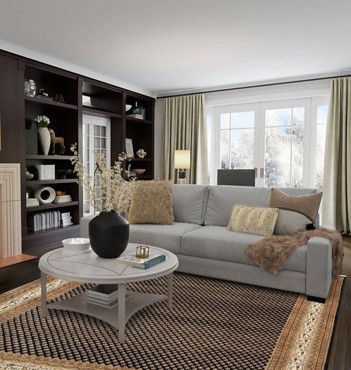 Classic Black Mir in 6x9 feet. The Mir design dates back to the sixteenth century. It features the Persian motif of Boteh, which is a floral spra...