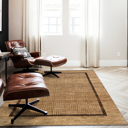 Erased Pokhara design in brown and cream. This beautiful earth tones design features a erased Persian border motif. Made of hand-spun New Zealand ...