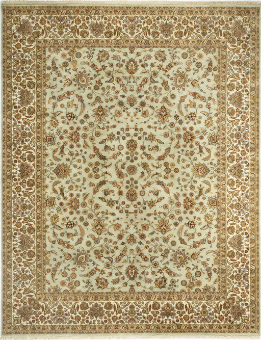 Taj Gold Border in 9x12. Indo-Nepalese weave rugs are very beautiful with a handcrafted feel, but they are also very durable. Silk accents look ev...