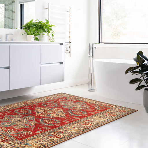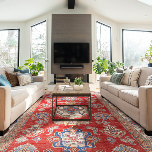 Note: These are one-of-a-kind pieces in limited production. Custom not possible. Design: Super Kazak Red. Size: 6'11" x 10'0" ft. Colour: Red M...