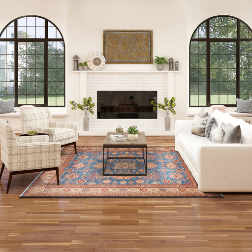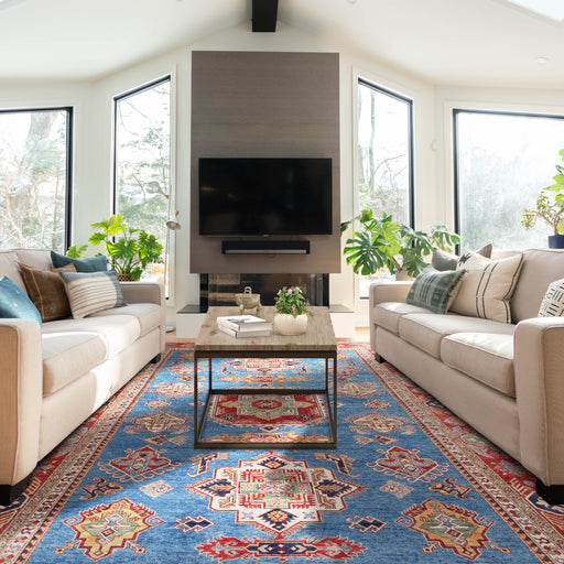 Note: These are one-of-a-kind pieces in limited production. Custom not possible. Design: Super Kazak Blue. Size: 8'03" x 10'03" ft. Colour: Blu...