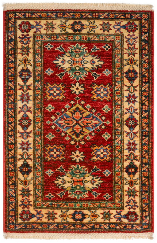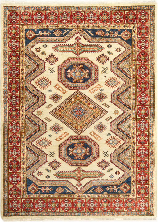 Note: These are one-of-a-kind pieces in limited production. Custom not possible. Design: Super Kazak Colour: Red and Ivory. Size: 5'0" x 6'10" f...