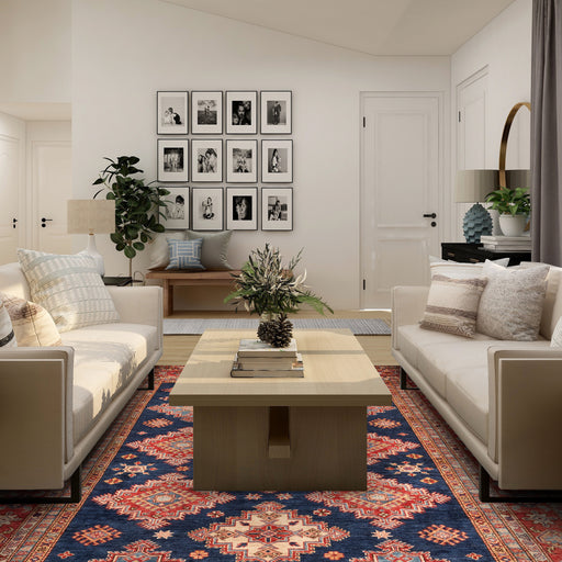 Note: These are one-of-a-kind pieces in limited production. Custom not possible. Design: Super Kazak Colour: Blue and Red Size: 6'11" x 10'01''...