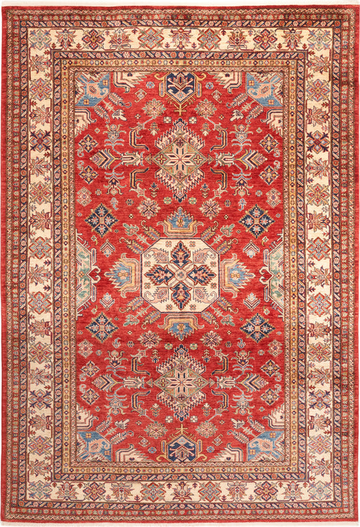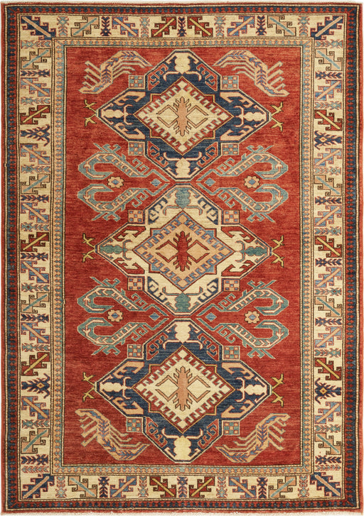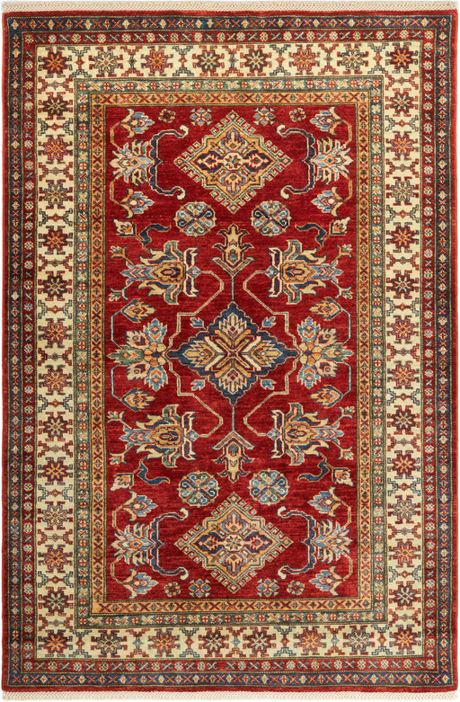 Note: These are one-of-a-kind pieces in limited production. Custom not possible. Design: Super Kazak Colour: Red and Ivory. Size: 4'02" x 6'02...